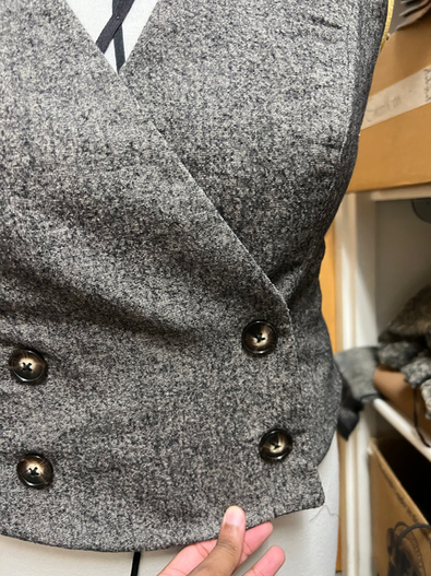 Sweeney Todd's Act II vest, Young Lucy's dress, and Judge Turpin's masquerade cape were all stitched and finished by me. I also built the duplicate garments for the production's understudies.