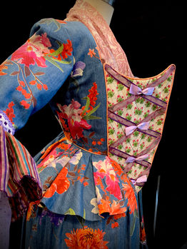 These denim bodices were cut, stitched, and piped by me and Joshua Bryan Maloney. All but one are made repurposed denim garments.
